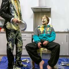 Dylan5516 had a sloppy pie dumped all over his head by Thefetishgirl